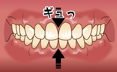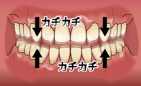 歯を噛み合わせてその位置で強く喰いしばる状態です。