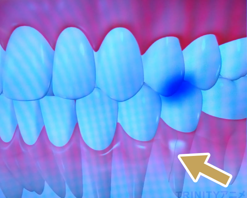 人は何らかのストレスを感じて特に睡眠時に歯ぎしりをします。噛みしめる力は約200㎏と言われています。例えば、小児は脱臼が多く、成人になるにつれて骨折が増えてきます。歯も骨と同じような成分でできているため年齢とともに石灰化し歯槽骨と癒着し、固くなり、柔軟性を失います。そのため強く噛みしめたり、喰いしばることによって歯根破折を起こすようになります。