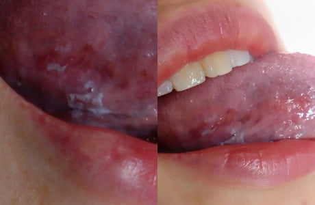 - 舌に白いできものがある