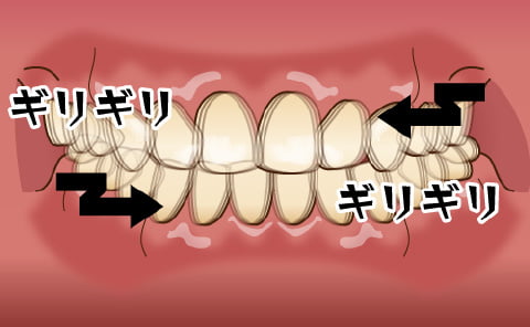 歯を噛み合わせてその位置で強く喰いしばる状態です。