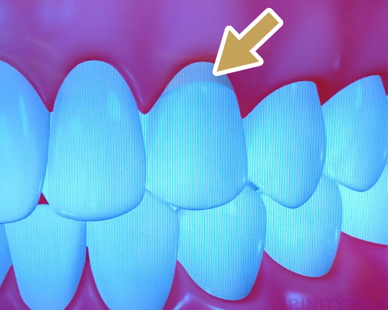 歯に過剰な力が加わると、歯質が破壊し始め、エネメル質とセメント質の境界付近が欠けていくことがあります。象牙質が露出し、歯がしみる原因になったり、虫歯になりやすくなります。